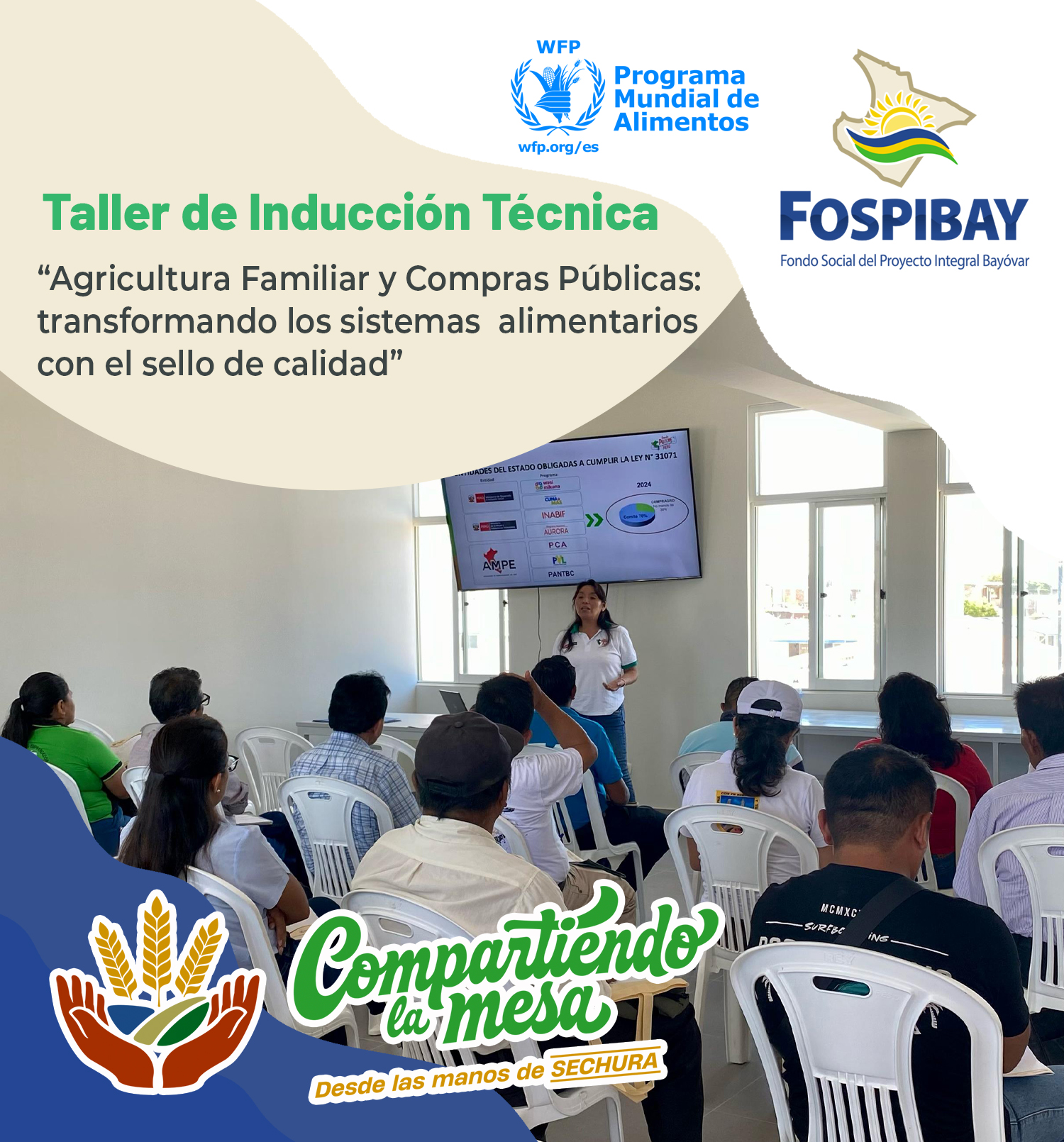El proyecto «Compartiendo la mesa, desde las manos de Sechura» realizó el taller: “Agricultura Familiar y Compras Públicas: transformando los sistemas alimentarios con el sello de calidad” , un espacio de aprendizaje que contó con la expositora a la especialista Antonia Ordóñez Chipana, quien está a cargo de la Dirección de Asociatividad y Desarrollo Empresarial del MIDAGRI.