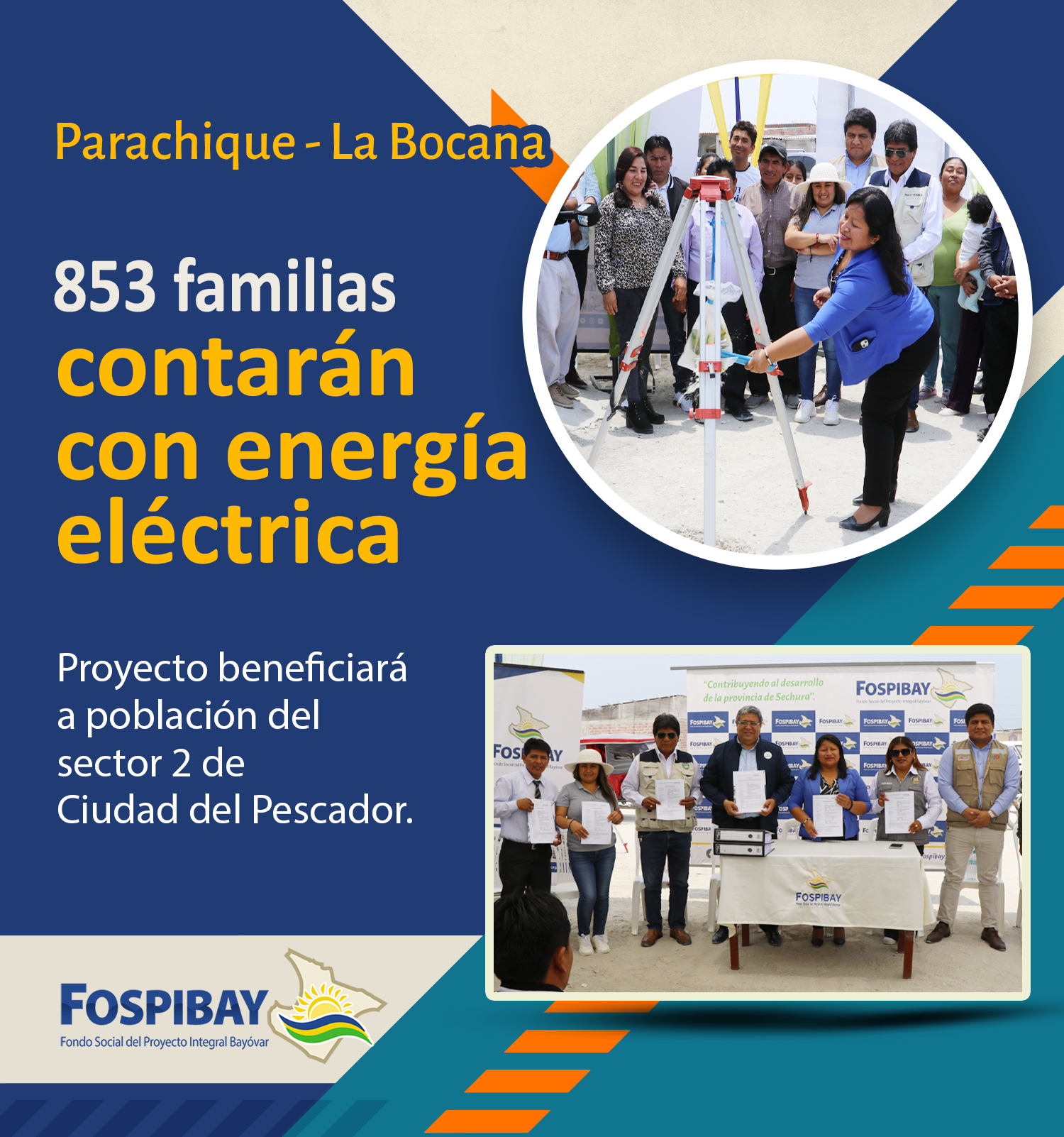 Con la suscripción de acta de inicio de obra y colocación de la primera piedra se da por iniciado la ejecución del proyecto “Electrificación del sector 2 de la Ciudad del Pescador – centro poblado Parachique – La Bocana”, que permitirá que las familias de este sector del centro poblado Parachique cuenten con este importante servicio para impulsar el desarrollo socioeconómico de la población.