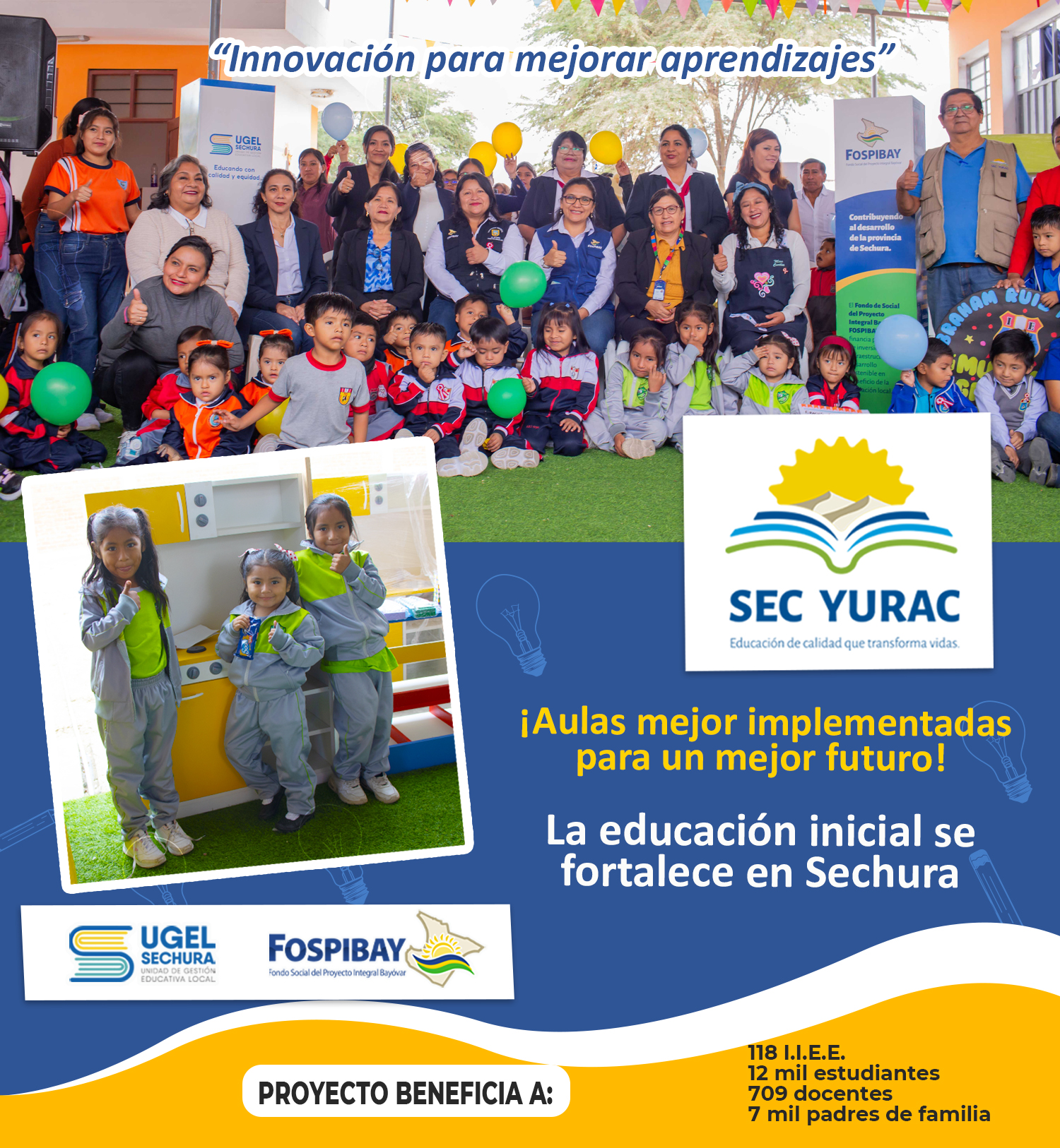 Esta entrega impactará directamente en el desarrollo integral de mas de 2 mil niños y niñas, promoviendo aprendizajes más dinámicos, entornos más estimulantes y mejores condiciones desde los primeros años de vida escolar, gracias al Proyecto Educativo SEC YURAC, financiado por FOSPIBAY en alianza con UGEL Sechura, ![]()