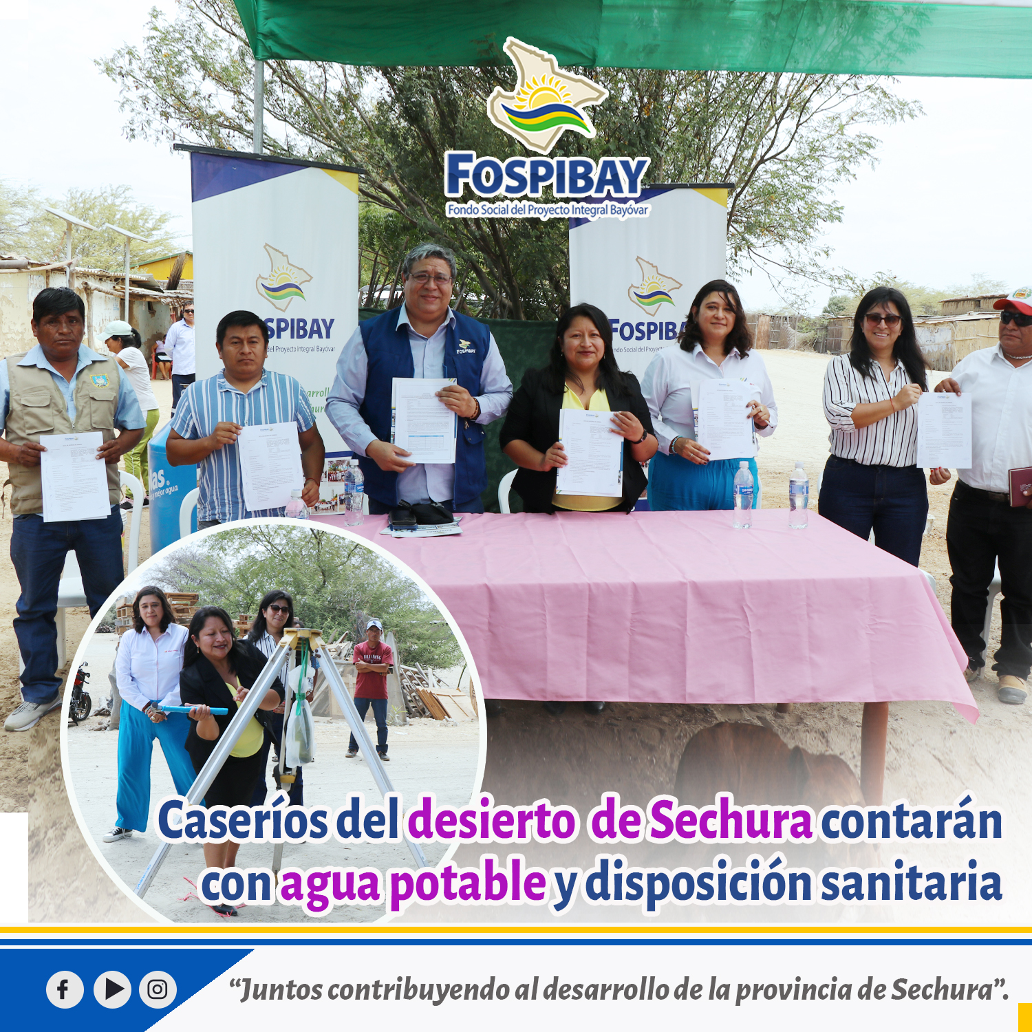 Mas de 320 familias residentes en los diferentes caseríos del desierto de Sechura, avizoran una mejor calidad de vida gracias al inicio de la ejecución del proyecto: “Mejoramiento del servicio de agua potable y disposición sanitaria de excretas en los caseríos y anexos del desierto de Sechura” que será ejecutado por el FOSPIBAY como parte del convenio suscrito con la Municipalidad provincial de Sechura como unidad formuladora.