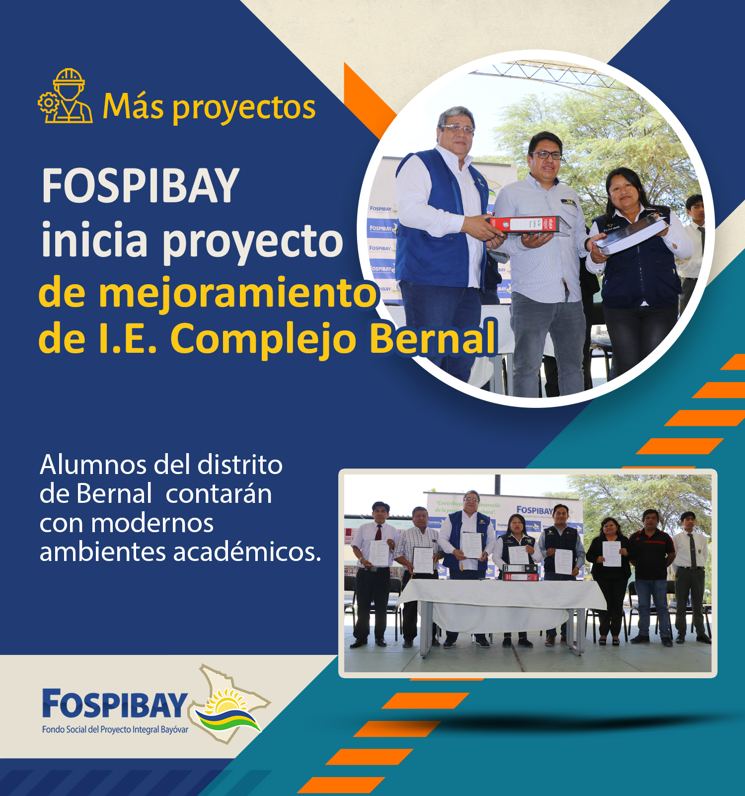 , se llevó a cabo la ceremonia de inicio de obra del proyecto de mejoramiento de infraestructura en la I.E. Complejo Bernal  . Este importante proyecto será financiado por el FOSPIBAY con el objetivo de mejorar el acceso al servicio educativo