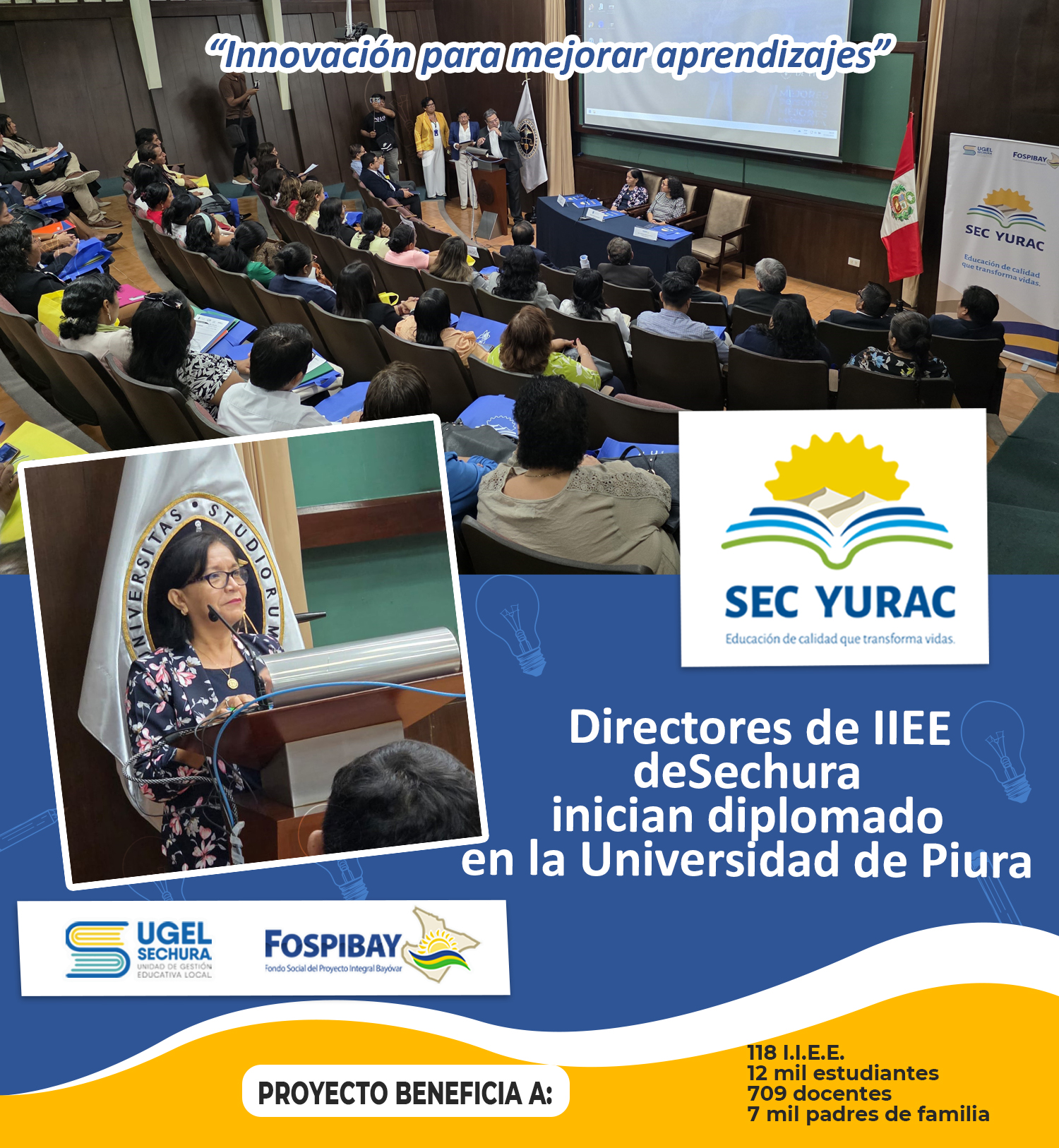 Noventa directores de instituciones educativas de la provincia de Sechura iniciaron con éxito el “Programa de Formación para el Desarrollo y Fortalecimiento de Competencias en Gestión Escolar” que dicta la Universidad de Piura en el marco del proyecto educativo “Sec Yurac”, financiado por el Fondo social del Proyecto Integral Bayóvar (FOSPIBAY).