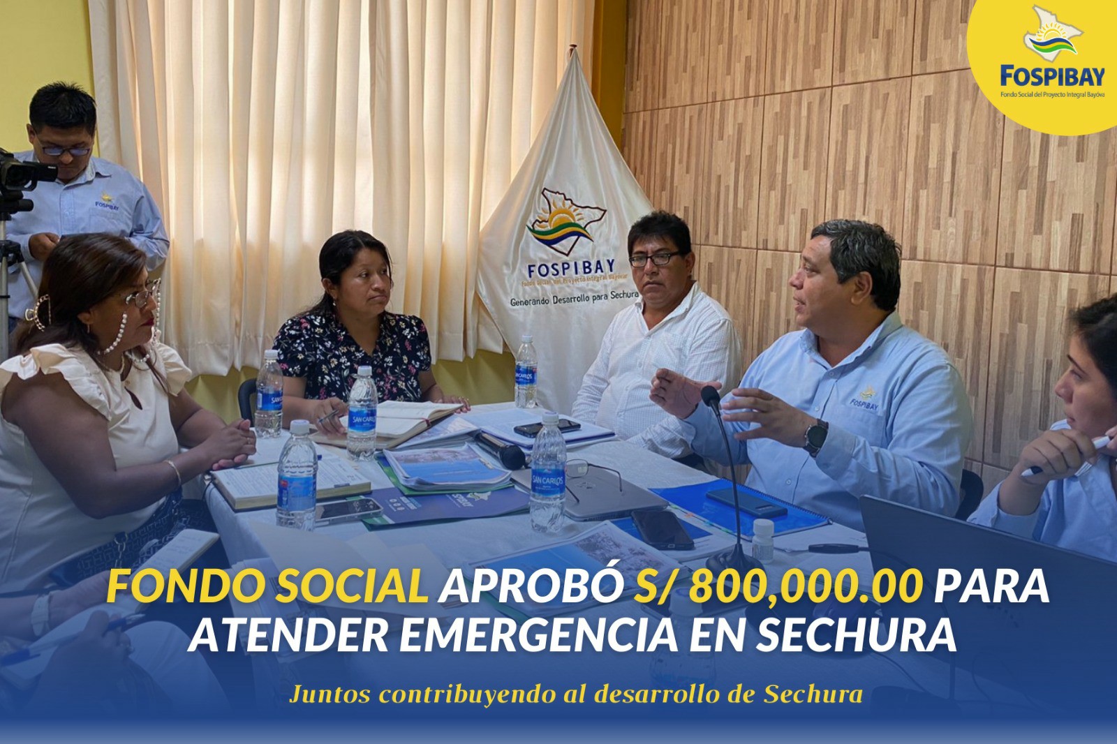 Tras la situación de emergencia que atraviesa la provincia de Sechura y sus distritos, se realizó una sesión de emergencia en las instalaciones del Fospibay, cumpliendo con los plazos y normativa que rige las acciones del Fondo Social del Proyecto Bayóvar.