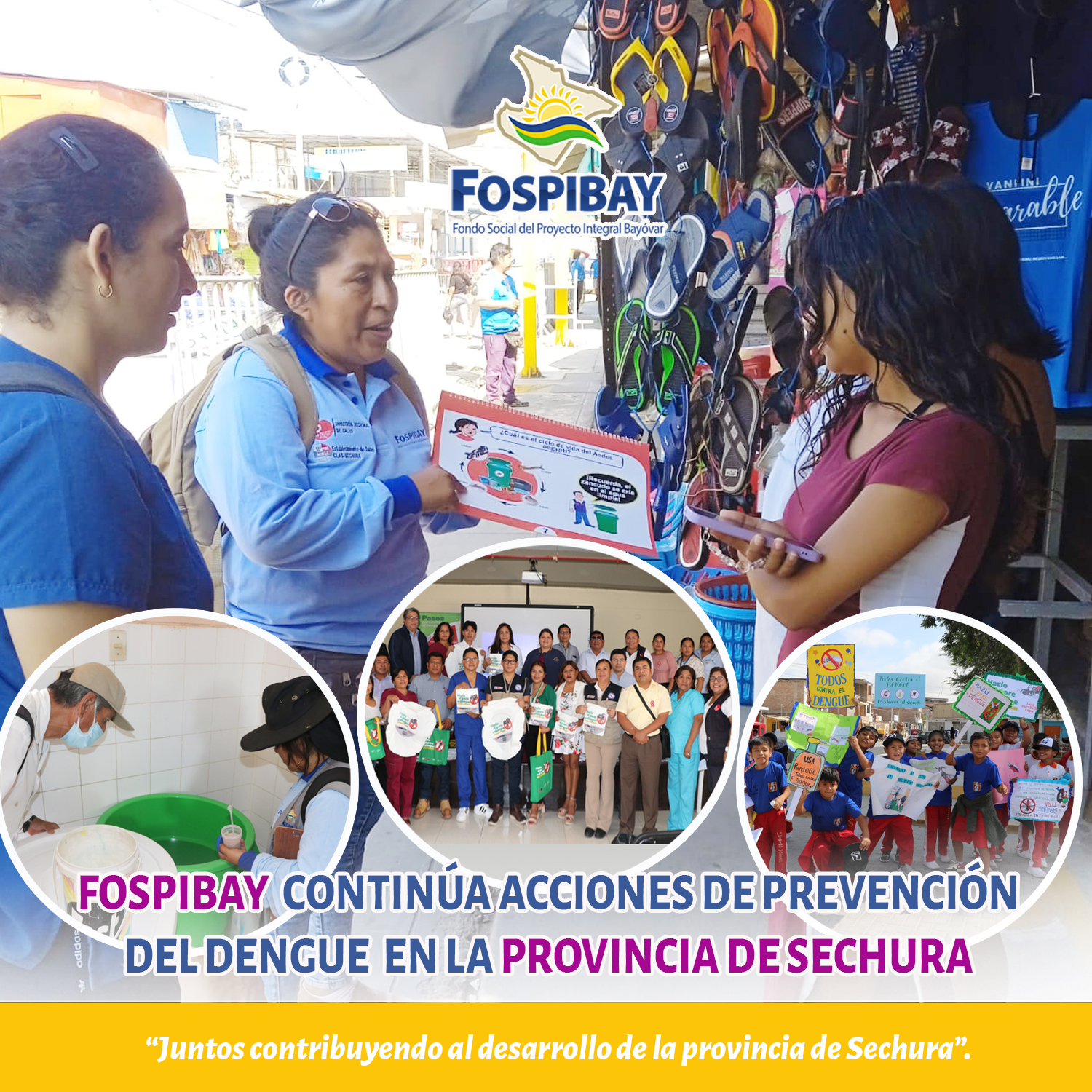 Frente al incremento de casos de dengue en la región Piura por el incremento del índice aédico y ante el anuncio de un posible periodo lluvioso por altas temperaturas, el Consejo Directivo del FOSPIBAY aprobó por unanimidad continuar la implementación del Plan integrado del prevención y control de enfermedades metaxénicas en la provincia de Sechura, presentado por el CLAS Sechura y avalado por DIRESA Piura.