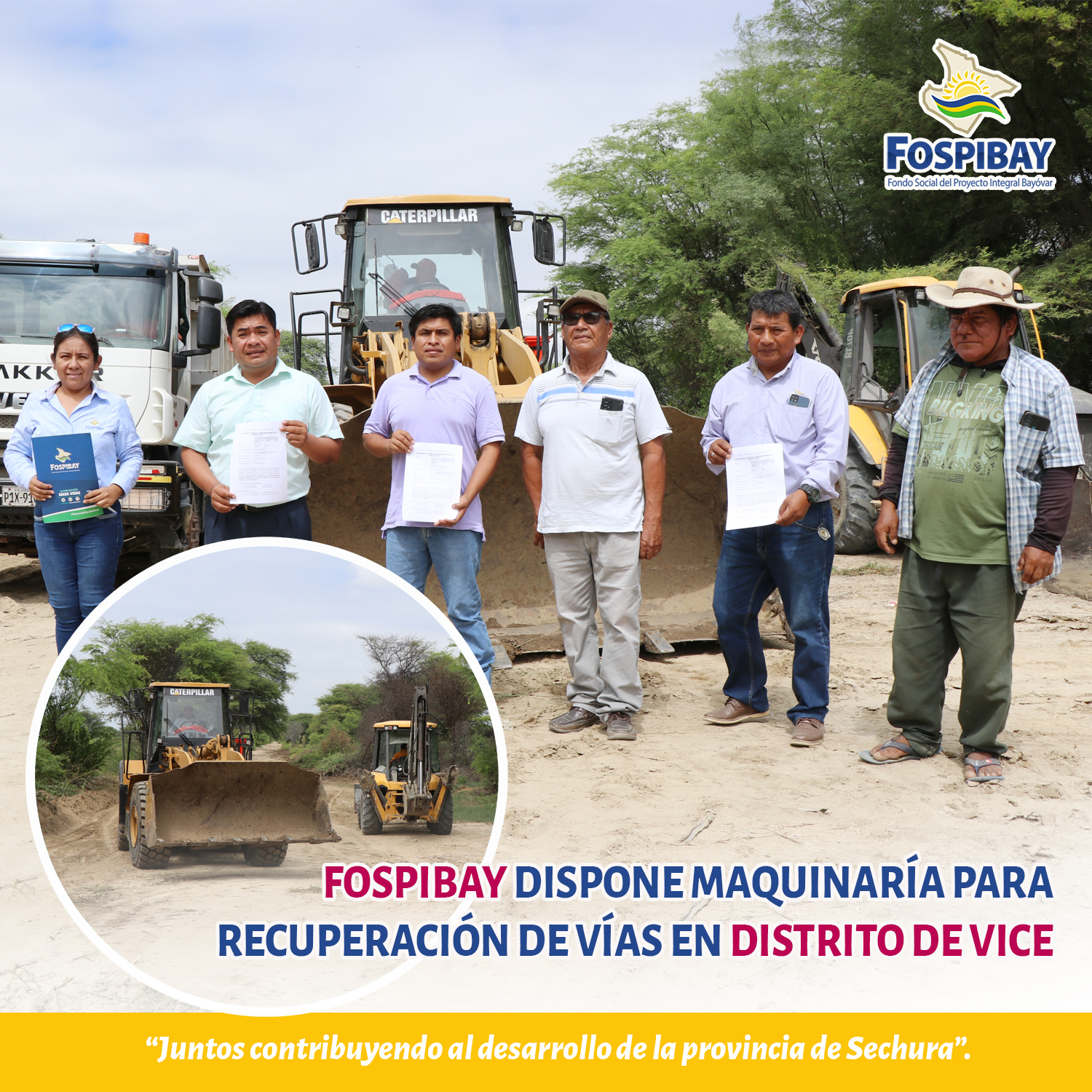 Por ello, el FOSPIBAY puso a disposición de la municipalidad de vice maquinaria pesada para iniciar con los trabajos de rehabilitación, mejoramiento y recuperación de la transitabilidad en el distrito, cuyos trabajos no sólo beneficiarán a la población de a pie sino que jugará un rol importante en el sector agrícola.