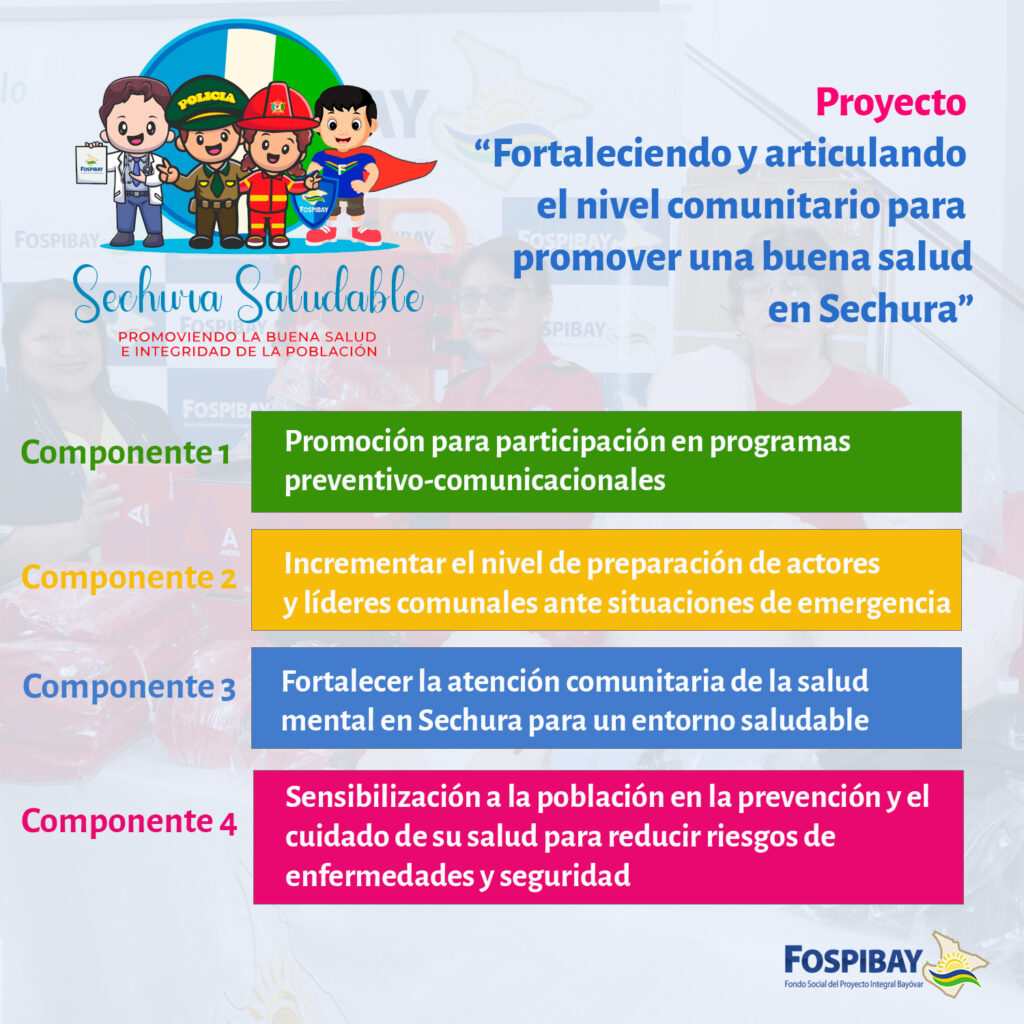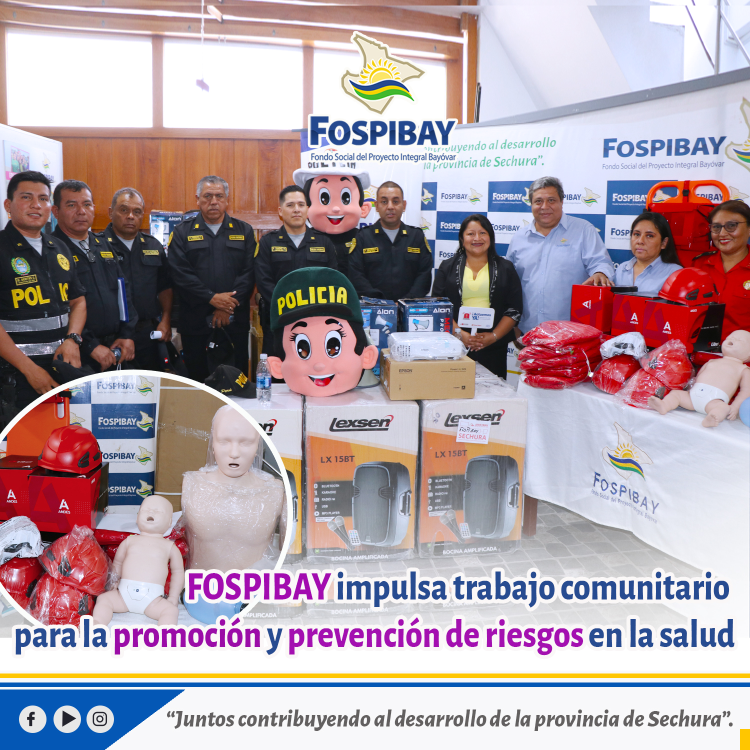 Con la finalidad de promover el trabajo comunitario y articulado de las instituciones que velan por la salud y seguridad de la población, el FOSPIBAY realizó una primera entrega de instrumentos y materiales del componente de implementación que permitirán, mediante un trabajo articulado, que las comisarías sectoriales de la provincia de Sechura, Compañía de Bomberos Illescas y el Centro de Emergencia Mujer, mejoren las condiciones de sus actividades en la promoción del cuidado de la salud y prevención de riesgos en la población Sechurana.
