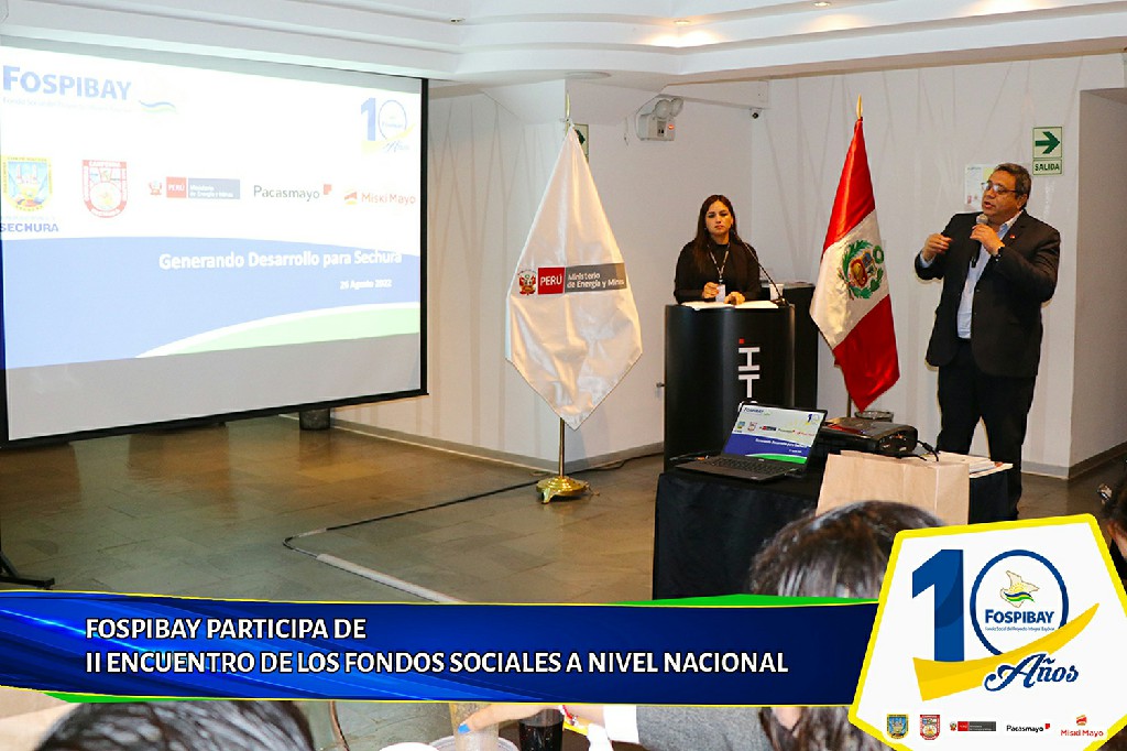 La Oficina de Gestión Social del Ministerio de Energía y Minas realizó el II Encuentro de Fondos Social del Perú, en el cual el Fondo Social del Proyecto Integral Bayóvar – FOSPIBAY, participó activamente con la asistencia del Consejo Directivo y Gerente del FOSPIBAY.
