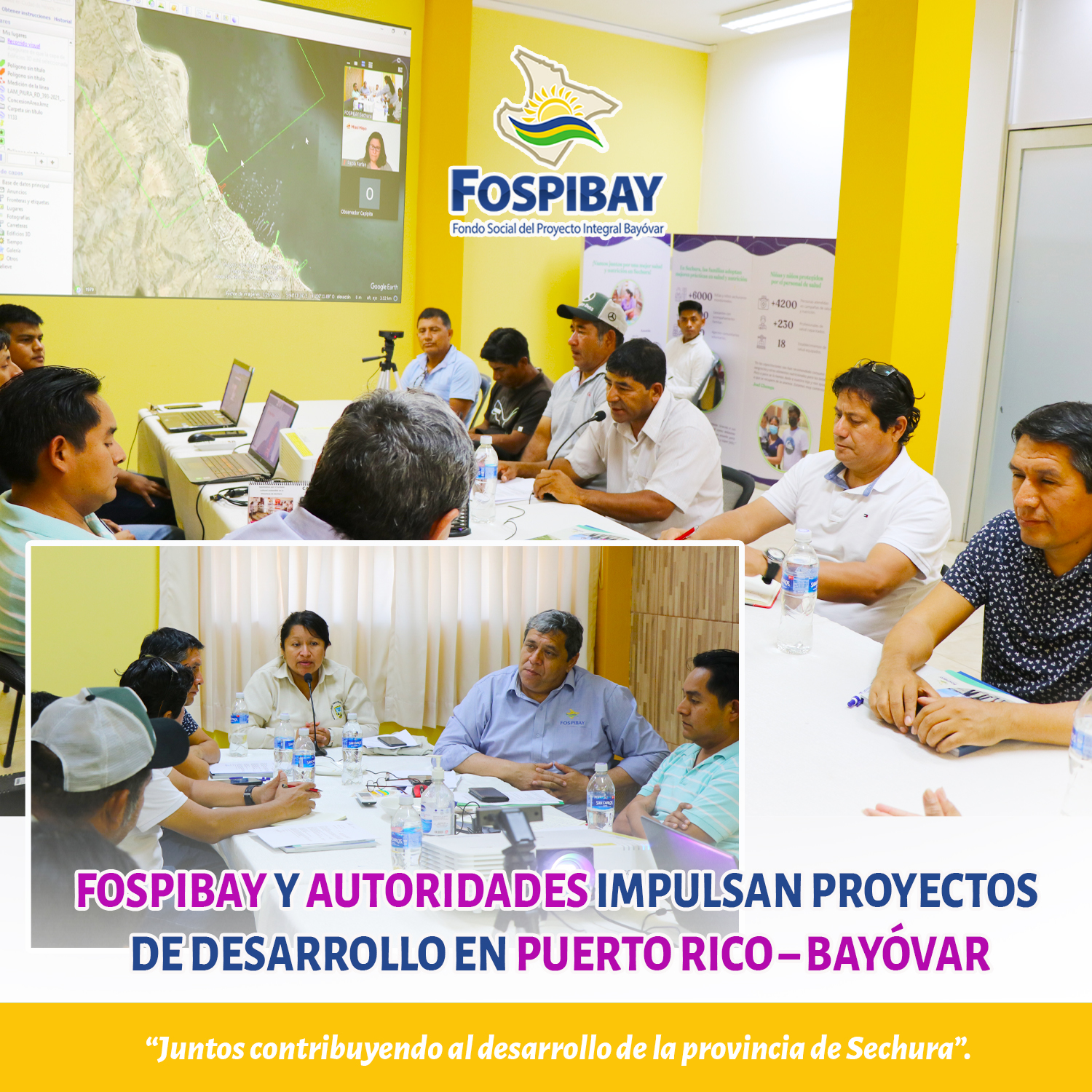 ????La sociedad civil de la caleta Puerto Rico – Bayóvar sostuvieron una importante reunión con miembros del Consejo Directivo y Gerencia del FOSPIBAY, con el objetivo de conocer el avance y planificación de importantes proyectos que serán de gran beneficio para el desarrollo de esta importante caleta.