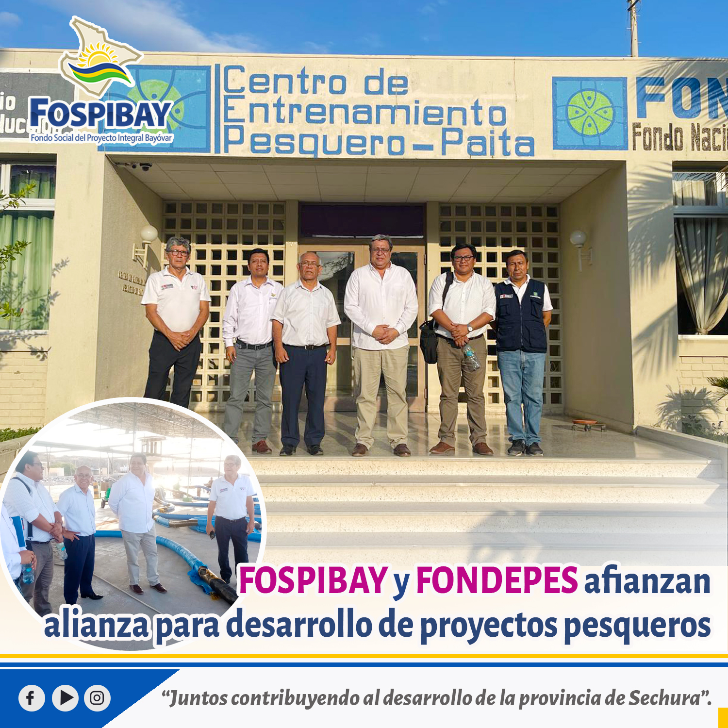 El FOSPIBAY viene desarrollando proyectos para el desarrollo de la provincia de Sechura como “Programa para la Reactivación Económica de los Pescadores Artesanales y Maricultores de la Bahía de Sechura Post Desastres Naturales” y “Jóvenes Productivos en Sechura” que serán beneficiados con esta alianza entre FOSPIBAY y FONDEPES.