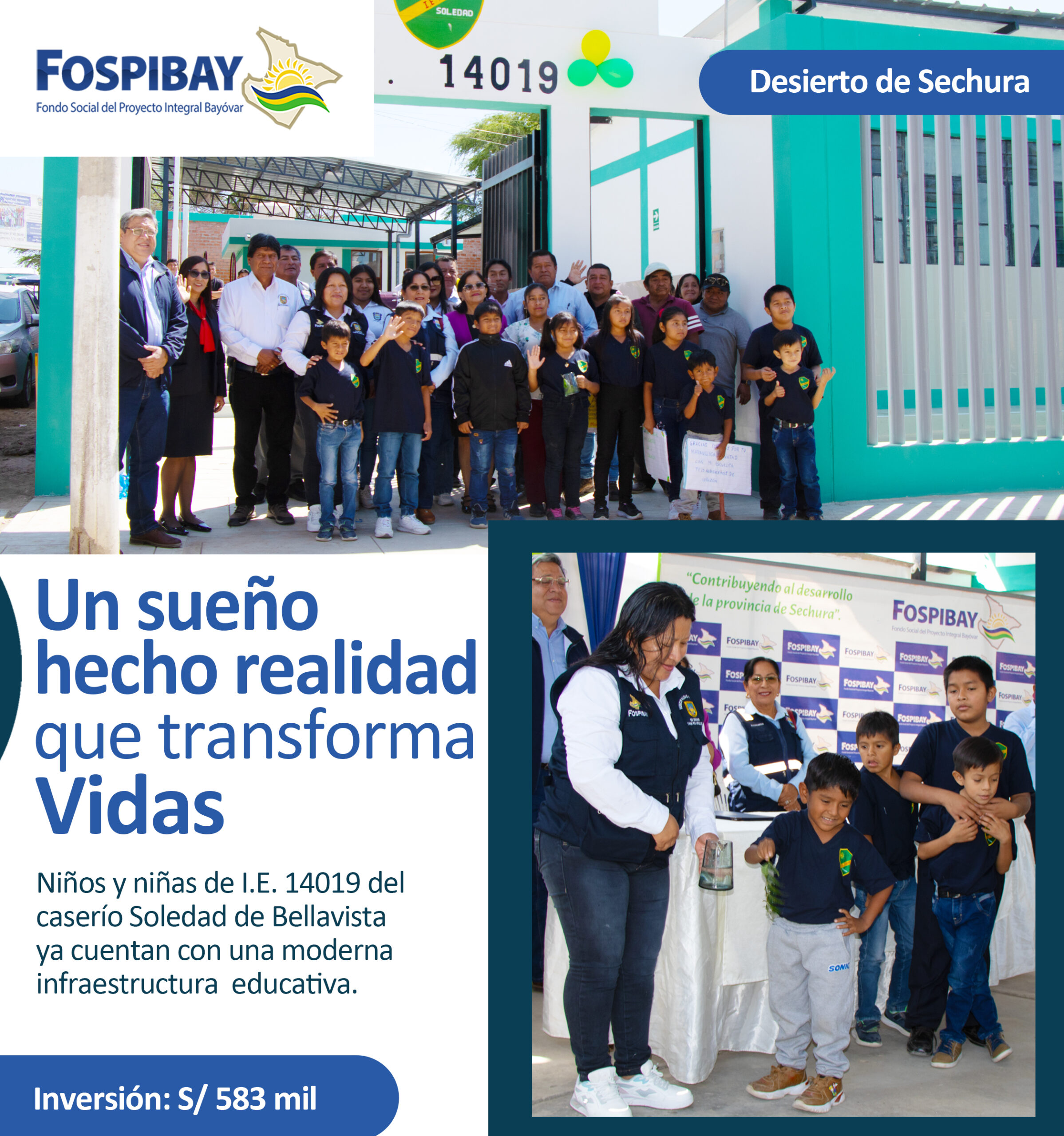 “Hoy nuestros niños no solo tienen una escuela más bonita, tienen un futuro más brillante” por lo cual FOSPIBAY reafirma su compromiso con la educación y el desarrollo humano, trabajando para llevar infraestructura moderna y condiciones adecuadas a todos los distritos de la provincia de Sechura.