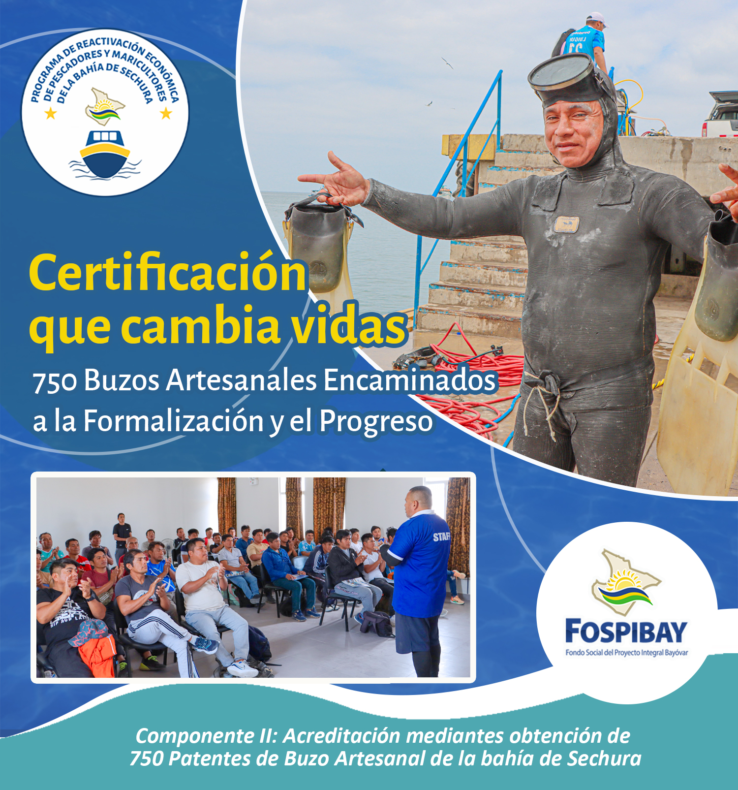 El Fondo Social del Proyecto Integral Bayóvar (FOSPIBAY) sigue fortaleciendo al sector maricultor en la bahía de Sechura, apoyando la formalización de cientos de buzos artesanales de toda la provincia. ![]()