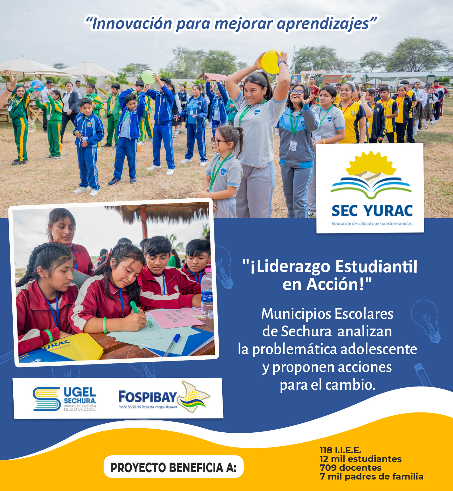 El proyecto educativo SEC YURAC realizó el Encuentro de Municipios Escolares “Conecta y actúa: fortaleciendo el liderazgo estudiantil para el cambio”, reuniendo a más de 100 estudiantes líderes de 16 Instituciones Educativas de la provincia de Sechura. Este espacio destacó la importancia de preparar a los jóvenes para liderar iniciativas que transformen sus comunidades y fortalezcan la participación estudiantil en la construcción de una sociedad más inclusiva y equitativa.