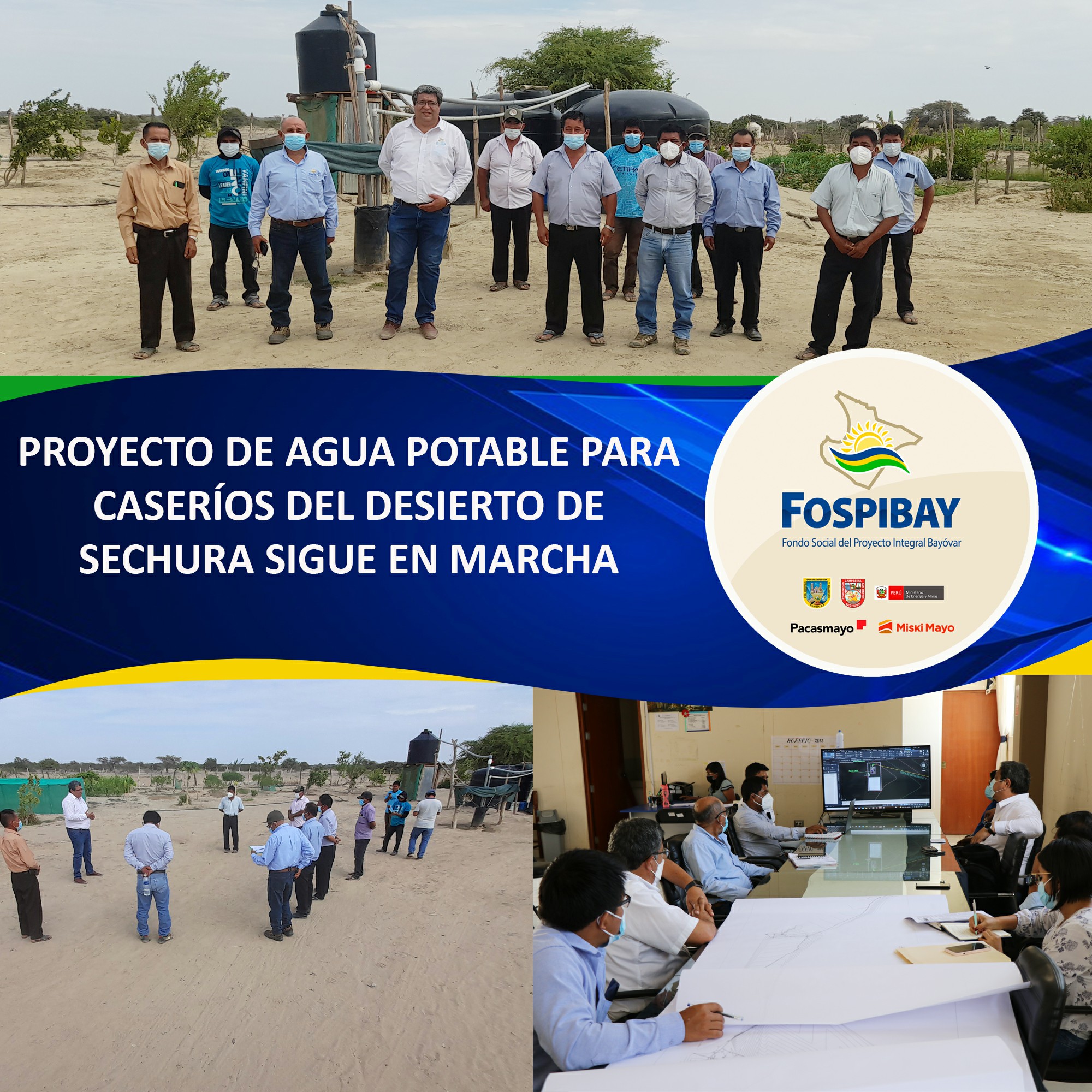 El equipo técnico y gerente del FOSPIBAY, Ing. Segundo Reusche, sostuvieron una importante reunión en el caserío Tres Cruces con los representantes de los anexos del desierto donde se informó que ya se encuentra en un 95% de avance el expediente técnico del proyecto de implementación de pozos que servirá para abastecer de agua potable a los caseríos: Belisario, Tres Cruces, Noria Honda, La Angostura, entre otros. En dicha reunión también participó el proyectista de dicho expediente.
