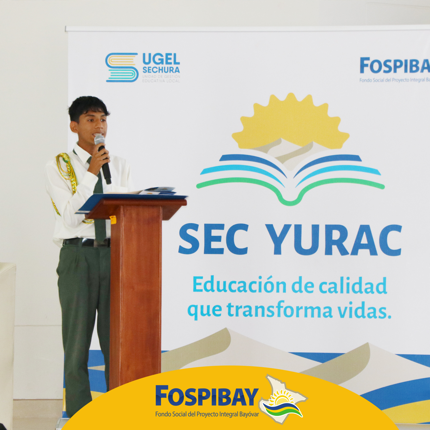 En representación de la comunidad educativa, el docente Carlos Bayona Alarza manifestó el compromiso de todos sus colegas en aras de alcanzar el mayor de los éxitos del proyecto educativo SEC YURAC. Igualmente, el Gerente del FOSPIBAY resaltó el compromiso del sector privado por coadyuvar en la formación de las futuras generaciones, a fin de que contribuyan a una mejor sociedad que impulse el desarrollo integral de la provincia de Sechura.