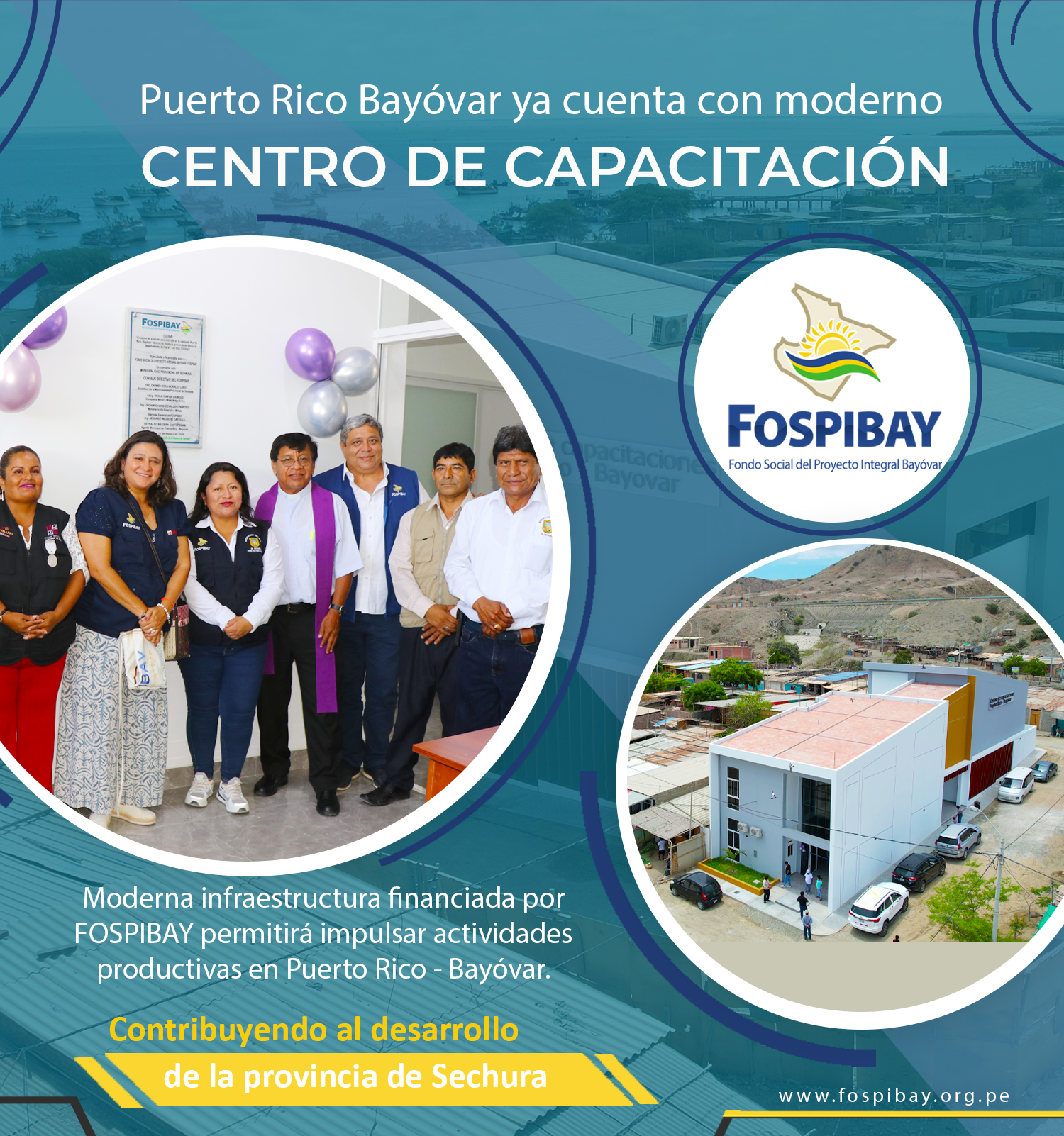 Con gran alegría, se llevó a cabo la ceremonia de inauguración del nuevo Centro de Capacitación y Salón de Usos Múltiples de la caleta Puerto Rico Bayóvar , un proyecto ejecutado por FOSPIBAY con una inversión de 2,8 millones de soles .