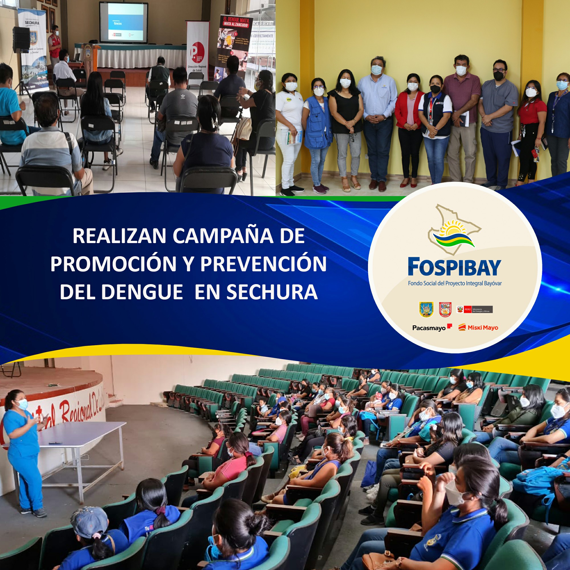 Como parte de las actividades del Plan de Prevención “Juntos venceremos el dengue en Sechura” se dio inicio al ciclo de capacitación a los diferentes actores sociales de la provincia de Sechura con el objetivo de contribuir a la difusión y concientización para prevenir la proliferación del zancudo transmisor. Dichas actividades fueron coordinadas en mesa de trabajo articulado entre DIRESA, FOSPIBAY, CLAS Sechura, Municipalidad de Sechura, UGEL Y PROSAN.